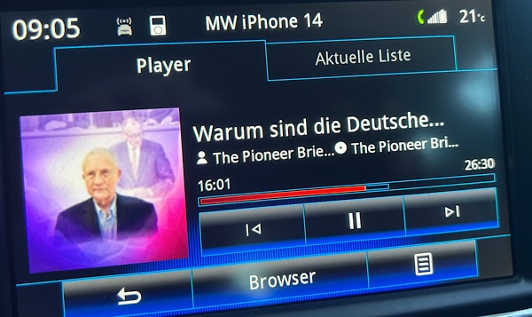 3. Auf dem Rückweg höre ich das Pioneer Morning Briefing mit Gabor Steingart und seinem Team. Ich genieße jeden Morgen unter der Woche, in weniger als einer halben Stunde ein Update der politischen Lage im In- und Ausland zu bekommen. Sympathisch, ideologie- und werbefrei. Dagmar Rosenfeld fragt den Chef des Forsa Instituts Prof. Manfred Güllner: „Warum sind die Deutschen unzufrieden mit dem Kanzler?“. Um es auf den Punkt zu bringen: Es liegt vor allem an seiner Unberechenbarkeit (Stop der Waffenlieferungen an Israel)und Wankelmütigkeit (Schuldenbremse, Strompreise etc.). Alles in allem ist Friedrich Merz ein inauthentischer Leader, der sich selbst und seine Wirkung durch mangende Integrität schwächt. Schade. Gerade jetzt braucht Deutschland eine starke, berechenbare Führungspersönlichkeit, die klare Werte hat an denen sich ihr Handeln orientiert!