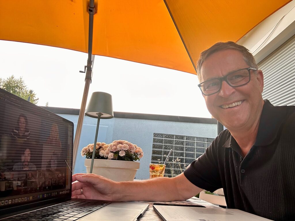 11. Um 20:00 Uhr beginnt das Online-Training für Einführungsleiter bei Landmark. Das geht bis 22:30 Uhr und ich entschließe mich kurzerhand, von der Terrasse aus teilzunehmen, nachdem die Temperaturen langsam erträglich werden.